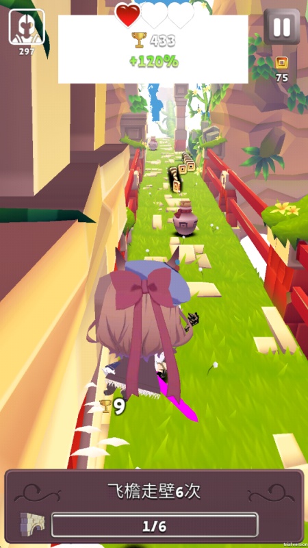 2、我们还可以消耗收集到的金币来强化角色的能力,让她能够跑的更快更远,获得更高的分数。