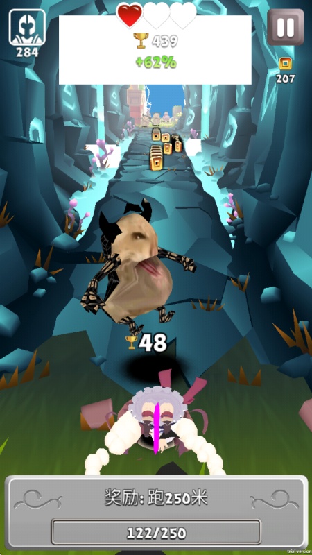 动作战斗跑酷:玩家通过左右滑动切换方向攻击怪物,结合跳跃、滑铲、二段跳躲避障碍,向上滑跳起后向下滑可触发“踩踏”击杀敌人,高空坠落或骑宠二段跳后下划可发动范围攻击“大地猛击”。
