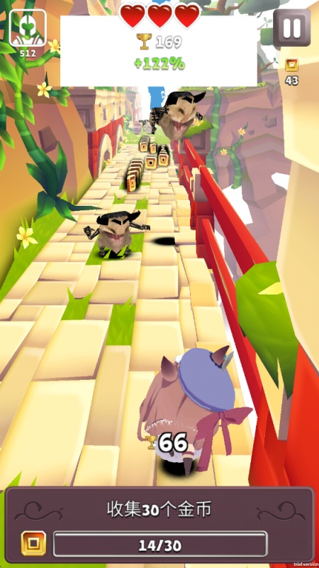 1、享受休闲趣味的跑酷之旅吧,跟随哈基米一起过五关斩六将,消灭更多的敌人,收集更多的金币。
