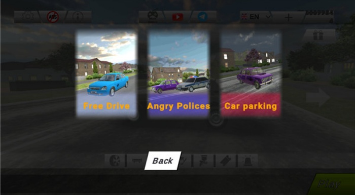 游戏提供了多种模式,包括自由驾驶、愤怒的警察、停车场模式等。
