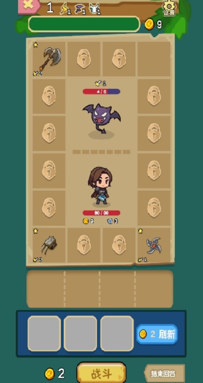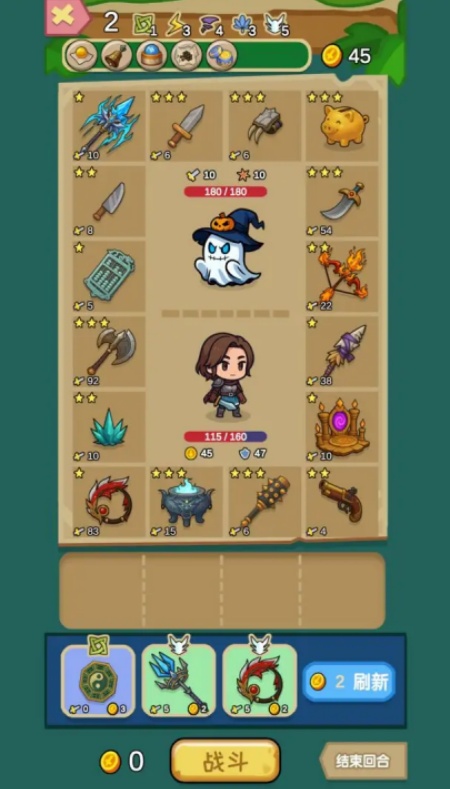 2、游戏的战斗会通过一个轮盘来完成,玩家需要往轮盘中放置各种武器,系统会随机抽取武器进行攻击。