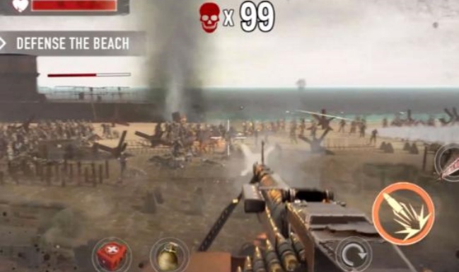 2、游戏采用第一人称视角,玩家的角色不会移动,僵尸会向玩家靠近,玩家通过移动手指在屏幕左侧控制摄像头,点击或按住屏幕右侧进行射击,屏幕左侧还有瞄准镜,右侧有特殊物品。