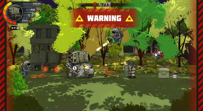 3、进入游戏关卡,通过移动角色,跳跃和攻击,使用不同的枪和手榴弹可以快速的消灭敌人。