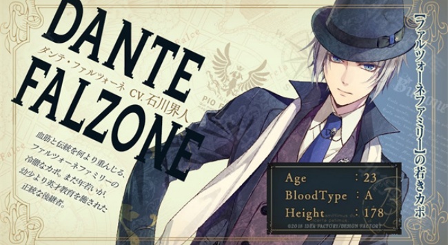 游戏中有多个可攻略男主,包括但丁・法尔宗(CV:石川界人)、吉尔伯特・烈福(CV:森久保祥太郎)、