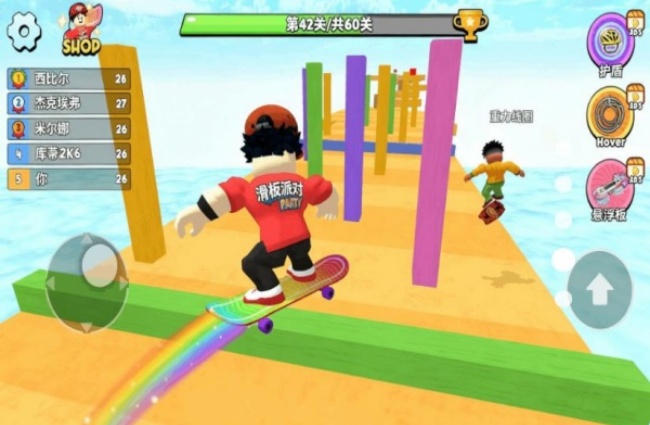 3、收集途中的金币与能量道具,用于升级角色属性或解锁新滑板皮肤。