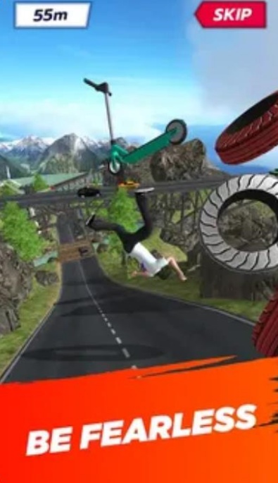 2.后期可解锁自行车、滑板车、旱冰鞋等非滑板载具,不同载具碰撞效果差异巨大 —— 比如旱冰鞋摔倒时会连滑好几米,自行车撞击后会散架,进一步提升玩法多样性。