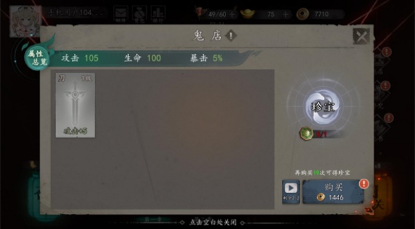 2、打通关就能赚铜币,拿着铜币去 “鬼店” 给主角升级攻击力、生命值这些属性,升够次数还能拿珍宝奖励,实力蹭蹭涨。