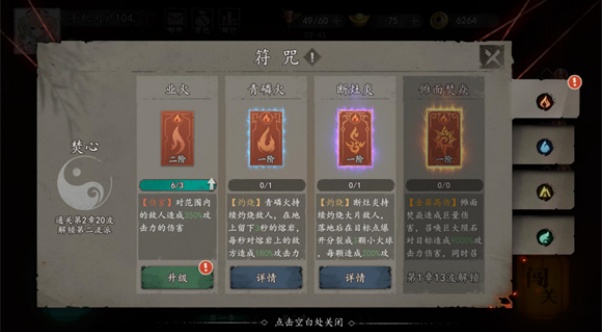 3、在关卡里右下角会自动生成各种属性的符咒让你使用,每次获得的符咒品质都是不同的。