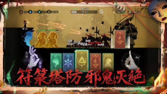 养成系统:通关获得铜币后,可在 “鬼店” 升级主角属性(如攻击力、生命值),提升次数达标可解锁珍宝;符咒可通过消耗资源升级,也能消耗符纸 “召唤” 新符咒拓展战术搭配。