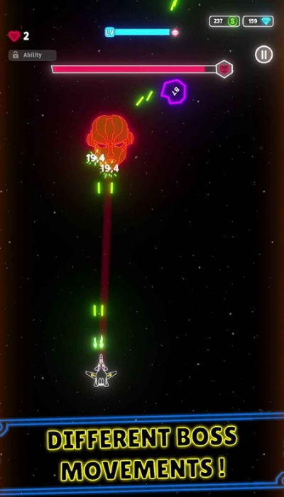 Neon Wings霓虹翅膀内置菜单版是一款由 VOODOO 开发的竖版飞行射击游戏,游戏采用赛博朋克风格,以绚丽的霓虹灯效果为特色,故障艺术与荧光色块相结合,每关都像是流动的电子画布,激光、粒子与几何弹幕构成致命盛宴。霓虹翅膀游戏安卓最新版动态背景还会随着 BPM 节奏变化,搭配了电子合成波音乐,击中敌人会触发贝斯音效,连击达成时爆发 8-bit 音浪,为玩家带来沉浸式的街机体验,营造出充满未来感的游戏世界。