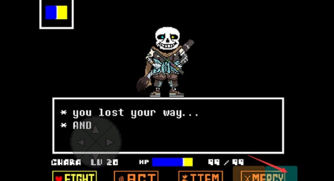 2、ink Sans会发动技能,释放不一样的招数,玩家将扮演爱心躲避攻击。