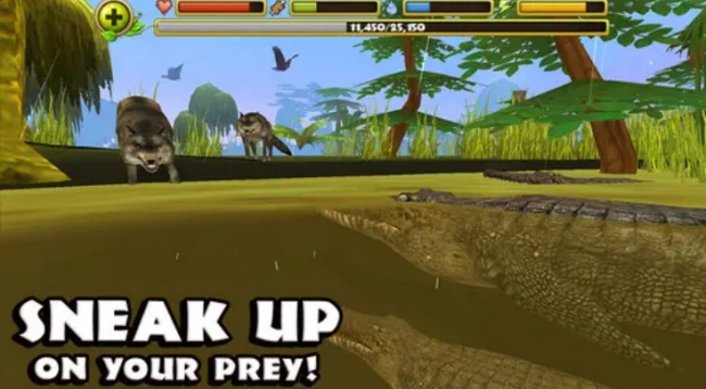 生存挑战:玩家需要控制鳄鱼在沼泽、河流等环境中生存,保持健康、饥饿、口渴和精力等状态。通过捕食各种动物来恢复能量,同时要注意避免被其他肉食动物攻击。