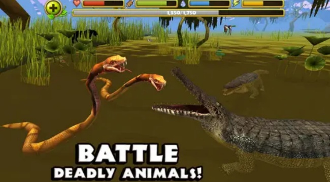 战斗系统:鳄鱼可以利用凶猛的咬合、强大的尾巴和迅捷的速度来捕捉猎物和与危险动物战斗。在与其他动物对抗时,屏幕上会显示对方的血量条,将敌人的血量清空即可成功击败它们。