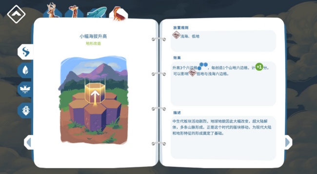 独特的卡片循环系统:玩家可以将手中的一定数量的卡牌兑换成一张特殊卡牌,即自然奇观,如阿尔卑斯山、薰衣草田或红杉林等,这为玩家提供了定制栖息地的独特选择。