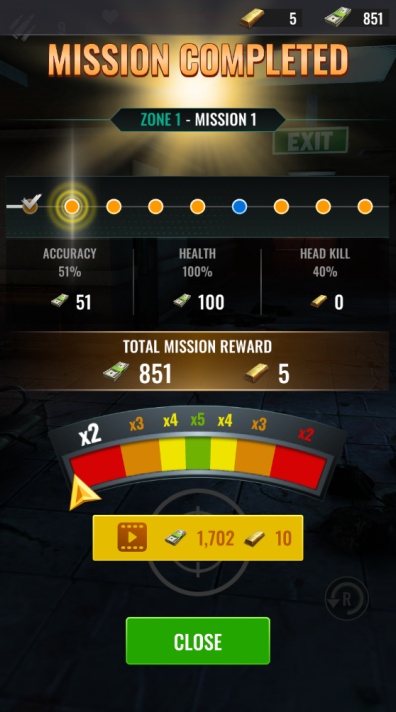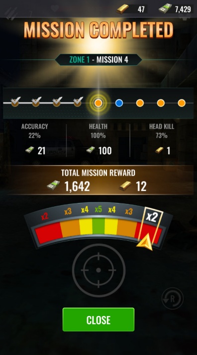 玩家进入游戏后,通过左侧滑动透明操控盘来转换视角,当中心瞄准镜精确对准敌人头部时,便会自动发射致命攻击。