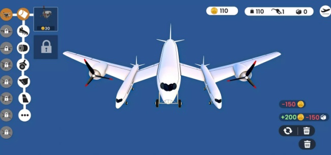 玩家可自由组合机身、机翼、引擎等部件,打造个性化飞行器。游戏提供丰富的零件库,包括高科技配件(如雷达系统、电传输控制设备),满足深度定制需求。