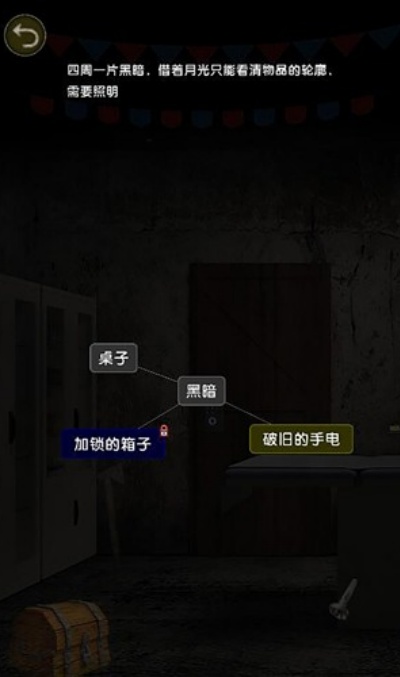 探索场景:玩家从点击黑暗处开始探索,仔细检查桌子等物品,可能发现关键线索。还可以使用斧头劈开箱子等获取道具,将电池装入电筒为探索黑暗场景提供照明。