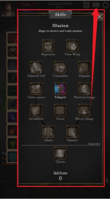 6、点击【书本】的图标,如图所示,可以查看自己的技能点。