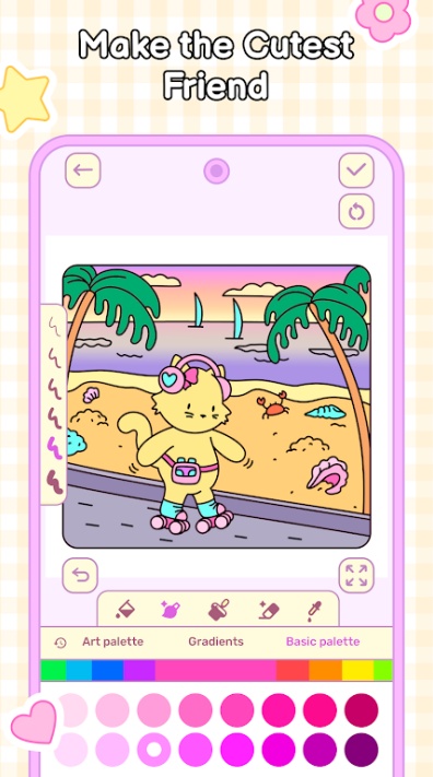 我的可爱朋友们游戏安卓最新版是一款主打萌宠养成的温馨风休闲模拟手游,核心围绕动物咖啡馆经营与小动物照料展开,还加入了社交、AR 互动等趣味玩法。My Cute Friends我的可爱朋友们游戏免费版整体以治愈画风和轻松玩法为特色,里面全是各种软萌的小动物,你的任务超简单,就是给这些动物朋友们涂上好看的颜色,让它们变得更招人喜欢,适合喜爱小动物的各年龄段玩家。游戏里还有好多不同场景可以随便选,想涂哪个就涂哪个,这些可爱的小家伙们都在等着你来打扮呢~