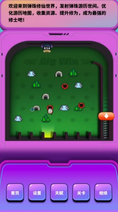 1、打破了传统修仙游戏打坐修炼的模式,也跳出了弹珠游戏单纯闯关的框架,用弹珠弹射的操作来驱动修仙进程。