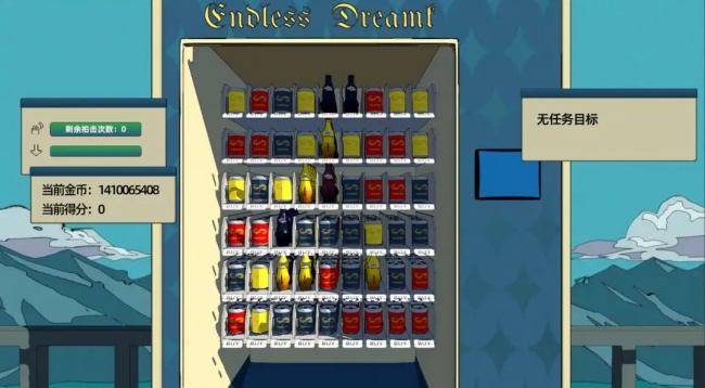 游戏内核心道具是各类饮料,不同品牌的饮料初始价格不同,价格越高的饮料摆放位置越靠贩卖机上层。