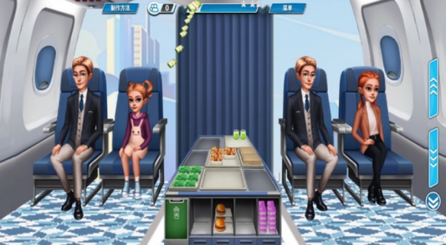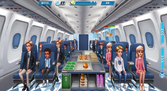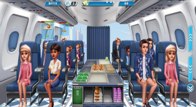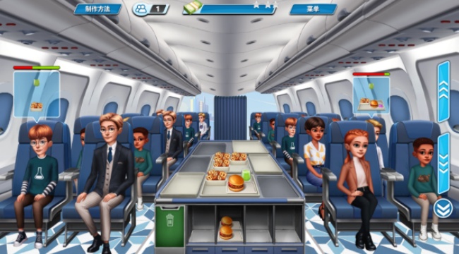 场景与画风精致:采用卡通画风,还原了经济舱、商务舱等不同舱位的场景细节,蓝天白云的背景搭配餐具碰撞等温馨音效,营造出沉浸式的云端服务氛围。