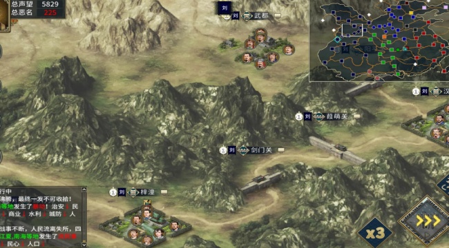 玩家出征时可组建多支部队,配置主将和副将,利用武将兵法与兵种搭配制定战术,同时情报侦察很关键,需每月投入资源扩散情报范围,才能掌握敌方动向。