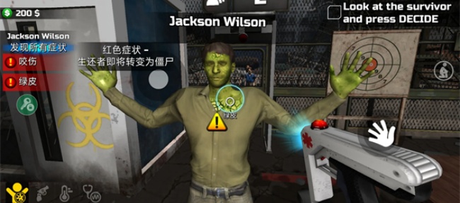 这是核心玩法之一。玩家要对排队的求生者逐个检查,能用紫外线手电筒、体温计、手动扫描仪这些工具,点击他们的身体部位排查感染痕迹,比如测量体温、查看伤口、观察呼吸频率等。