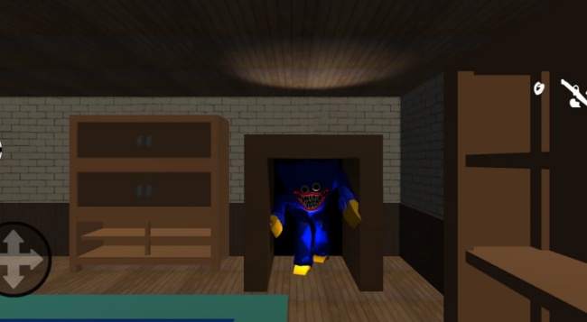 游戏玩法围绕 “躲避 + 解谜 + 逃生” 展开。操作上特别简单,用右侧虚拟图标就能控制角色前后左右移动,还能切换站立或蹲下姿势。