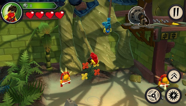 战斗与解谜结合:战斗时能释放元素旋风术清场,还能解锁黑曜石武器提升战力,不过像阔剑旋风这类技能过度使用会反噬角色生命值。解谜环节也很有巧思,比如摧毁场景里的绿色积木能收集零件,再搭建成弹簧床跳上高台,部分机关门还需要两个忍者同时拉动机关绳才能打开。
