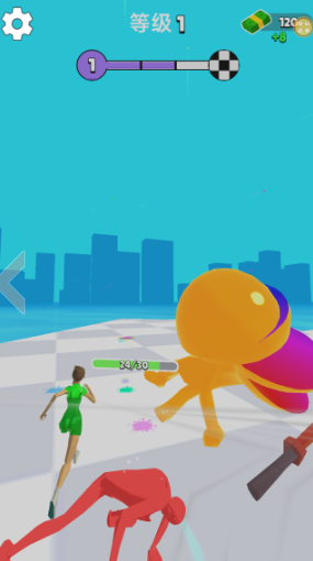 1、开局推进技巧:进入游戏后,滑动屏幕控制角色向前奔跑,主动搜寻小黄人发起对决,完成击倒任务即可获取金币奖励,为后续闯关积累基础;