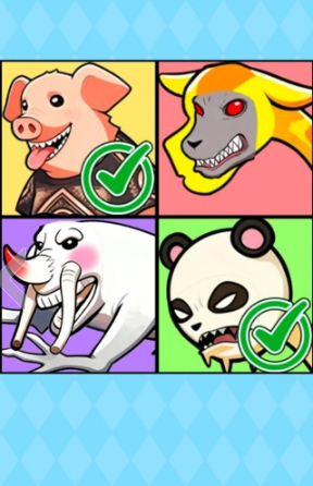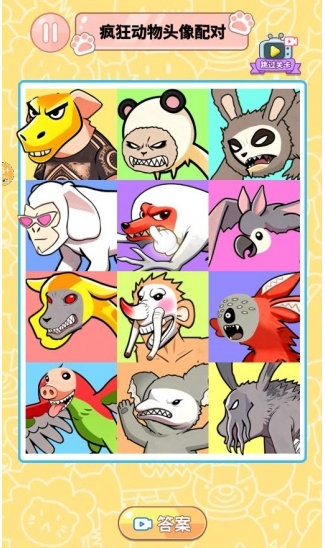 3、核心配对技巧:在网格中仔细搜寻,精准找到与抽取头像相同或存在关联的另一个搞怪动物头像,完成配对即可顺利过关;