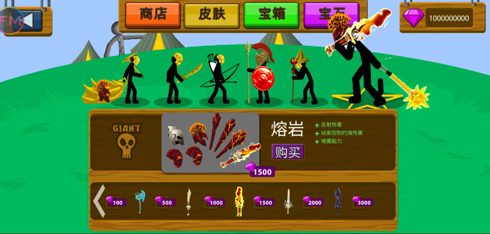 3. 战力升级自由:可消耗金币提升火柴人军队等级,解锁更强技能与属性,也能通过钻石购买装备、皮肤,打造专属强力兵团;
