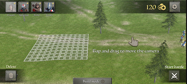 2、 点击左上角士兵图标,将士兵排布在指定方块区域完成排兵布阵,点击任意士兵即可组建作战队伍,搭配兵种优势备战厮杀。