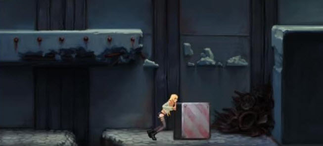 起身先将地面第一个箱子向左推,借助箱子跳上平台;再把第二个箱子推到右边落下,随后将其继续向右推,爬上箱子即可跳至下一区域。