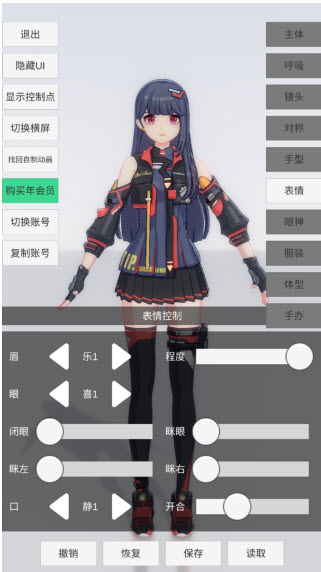 4. 表情界面支持精细化调整,眉毛、眼睛、嘴巴均可单独修改,可打造可爱、高冷、搞怪等各种风格表情;