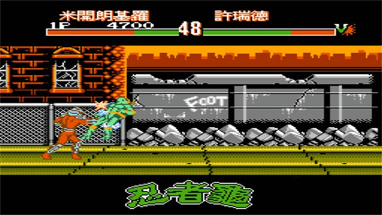 故事模式:玩家只能在四个神龟中选择一位进行格斗,不断闯关,最后和大BOSS决斗,救出老师。