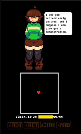 6、到了二阶段,Chara攻击会变快,但躲法和一阶段一样,还是绕圈走;要是血量见底,赶紧点背包吃食物回血,别让战斗直接失败。
