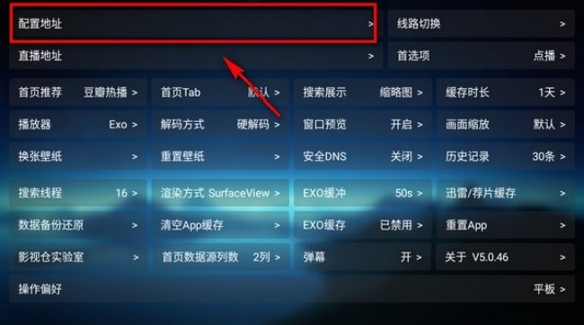进入“设置”界面后,点击最上面的“配置地址”;