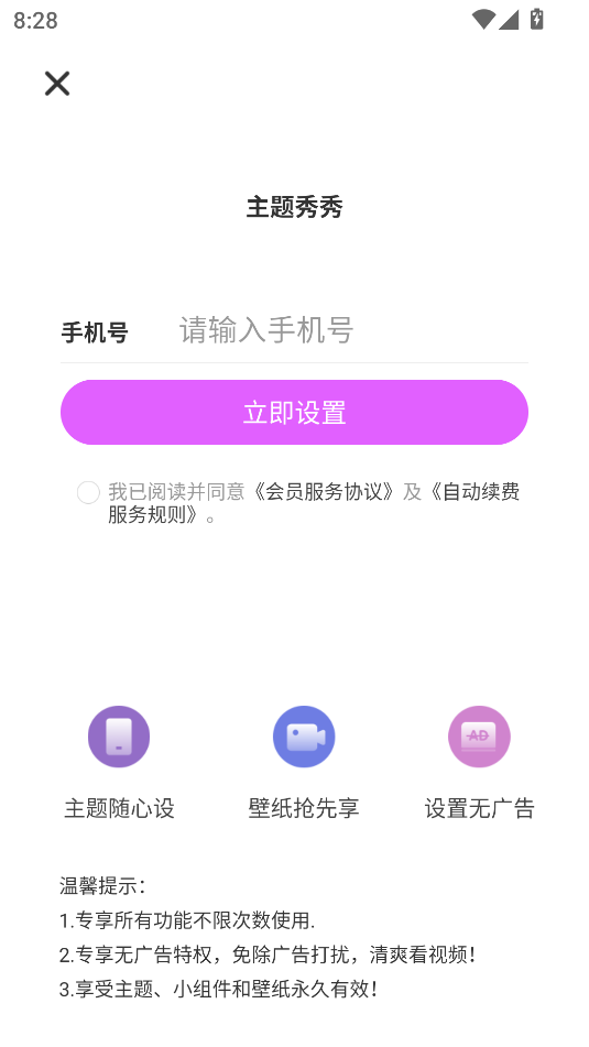 应用主题操作简单,轻轻一点就能将喜欢的主题设置到手机上,省时又便捷;