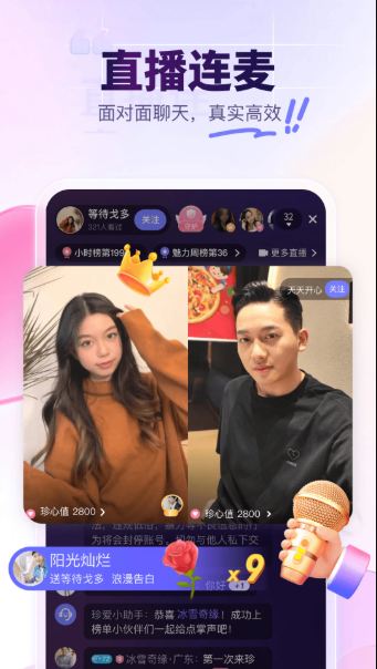 3、支持一键快速登录,同城速配功能帮你锁定身边缘分,智能算法精准推荐契合对象,恋爱约会、相亲互动都简单高效。