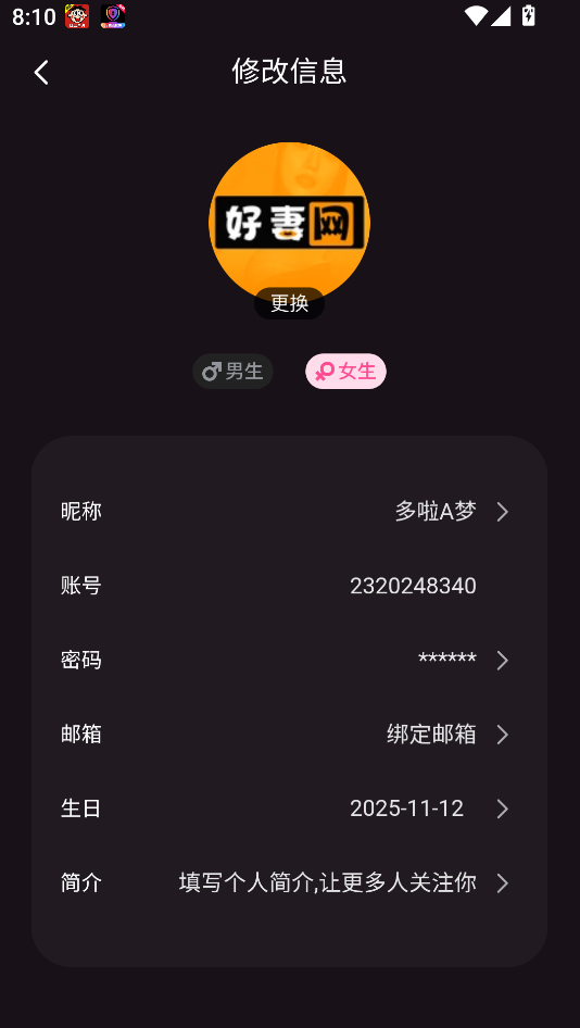 1、下载安装好妻网最新版客户端之后打开,点击我的,再点击修改信息,如下图: