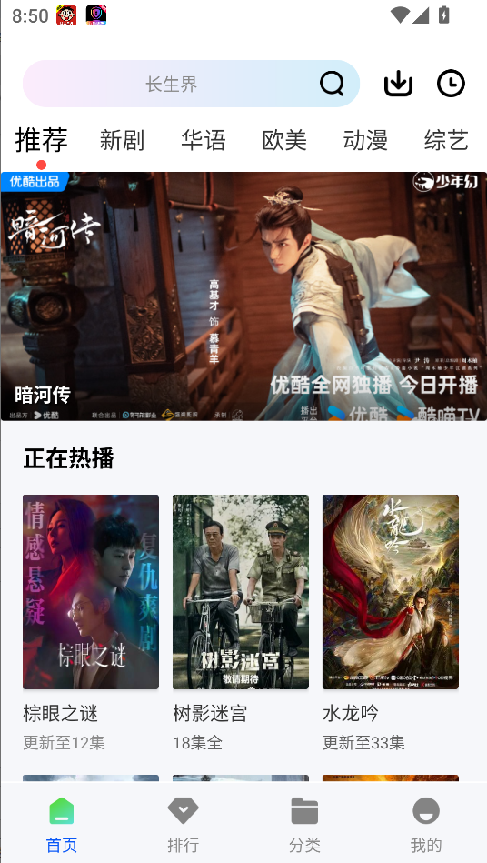2、进入 App 主页后,在分类栏或推荐列表里,找到你想观看的视频并点击进入。