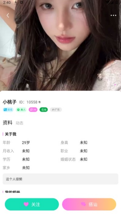 1、用户可在个人资料页上传最多 24 张照片,补充签名、职业、爱好等信息。