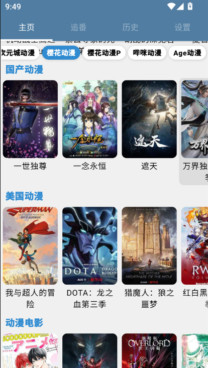 2. 极简追番流程:主界面3秒即可定位目标番剧,单点片名立即播放,历史记录自动同步观看进度,提升追番效率;