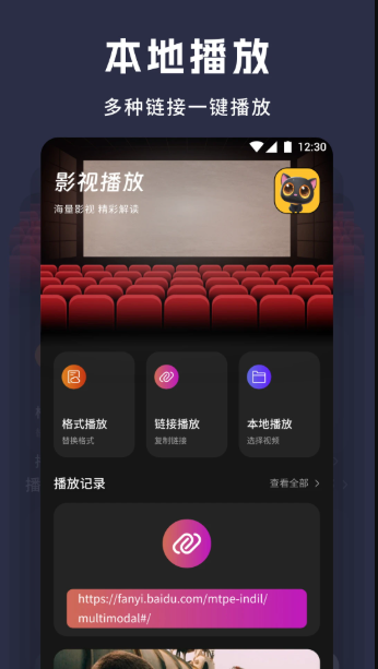 5. 高效本地播放:具备强大的本地视频播放功能,支持自定义导入视频播放,观影更便捷高效;