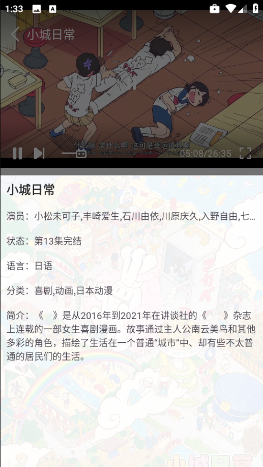2. 任意选择一部热播动漫点击播放,此处以“小城日常”为例;