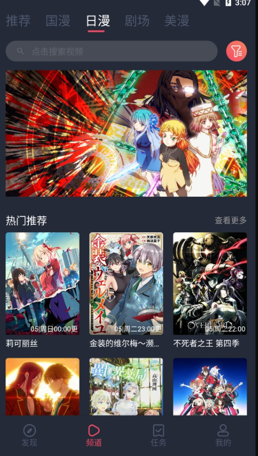 2. 首页清晰划分推荐、日本动漫、国产动漫、欧美动漫等栏目,可直接按栏目浏览筛选;