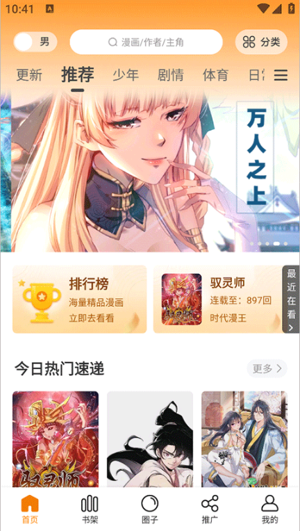 首页智能推荐:精准推送最新最热的漫画作品,帮助用户快速锁定近期高人气内容。
