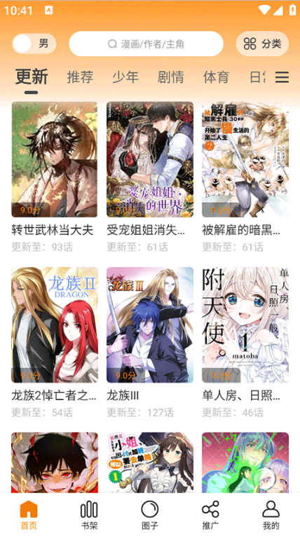更新专区板块:集中展示最近更新的漫画作品,方便追更用户第一时间获取更新动态。